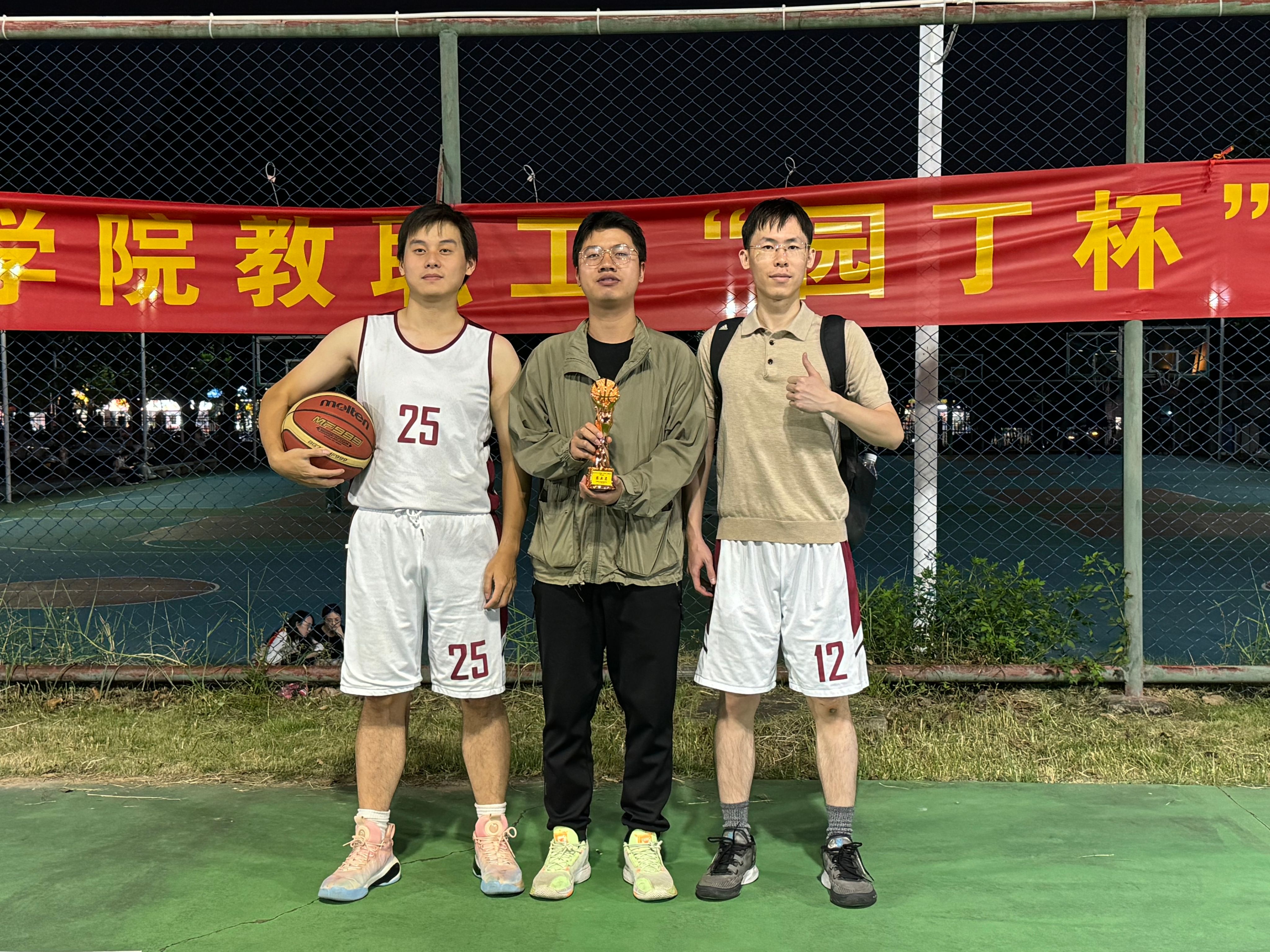 为丰富教职工业余文化生活,营造健康向上的校园氛围,校工会于202510月上旬成功举办了一年一度的william威廉中文官网教职工“园丁杯”篮球赛。我部冯金洋、莫宇聪两位年轻同志积极响应,作为骨干力量,与组织、人事、财务、团委、学报、老干等多个职能部门的同仁共同组建成乙组机关联队,在赛场上团结协作、奋勇拼搏,最终斩获第五名的优异成绩,展现了机关干部职工良好的精神风貌和团队凝聚力。