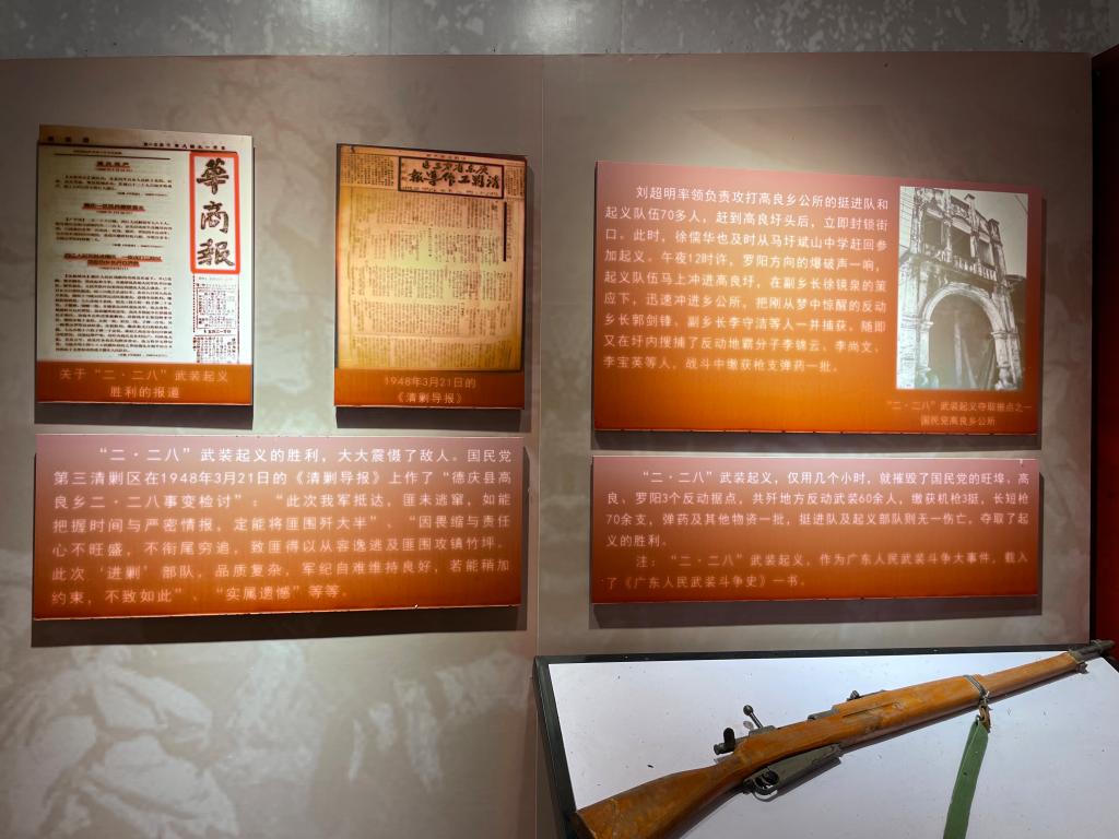 据悉,1948年2月28日,中共德庆地方组织在中国人民解放军粤桂湘边部队的援助下,成功发动德庆“二·二八”武装起义,起义部队英勇顽强,浴血奋战,一举攻下旺埠、高良、罗阳3个地方的国民党据点,开仓济贫,震撼了整个西江流域,打响了解放德庆的第一枪,为配合南下野战军解放肇庆起了关键作用。