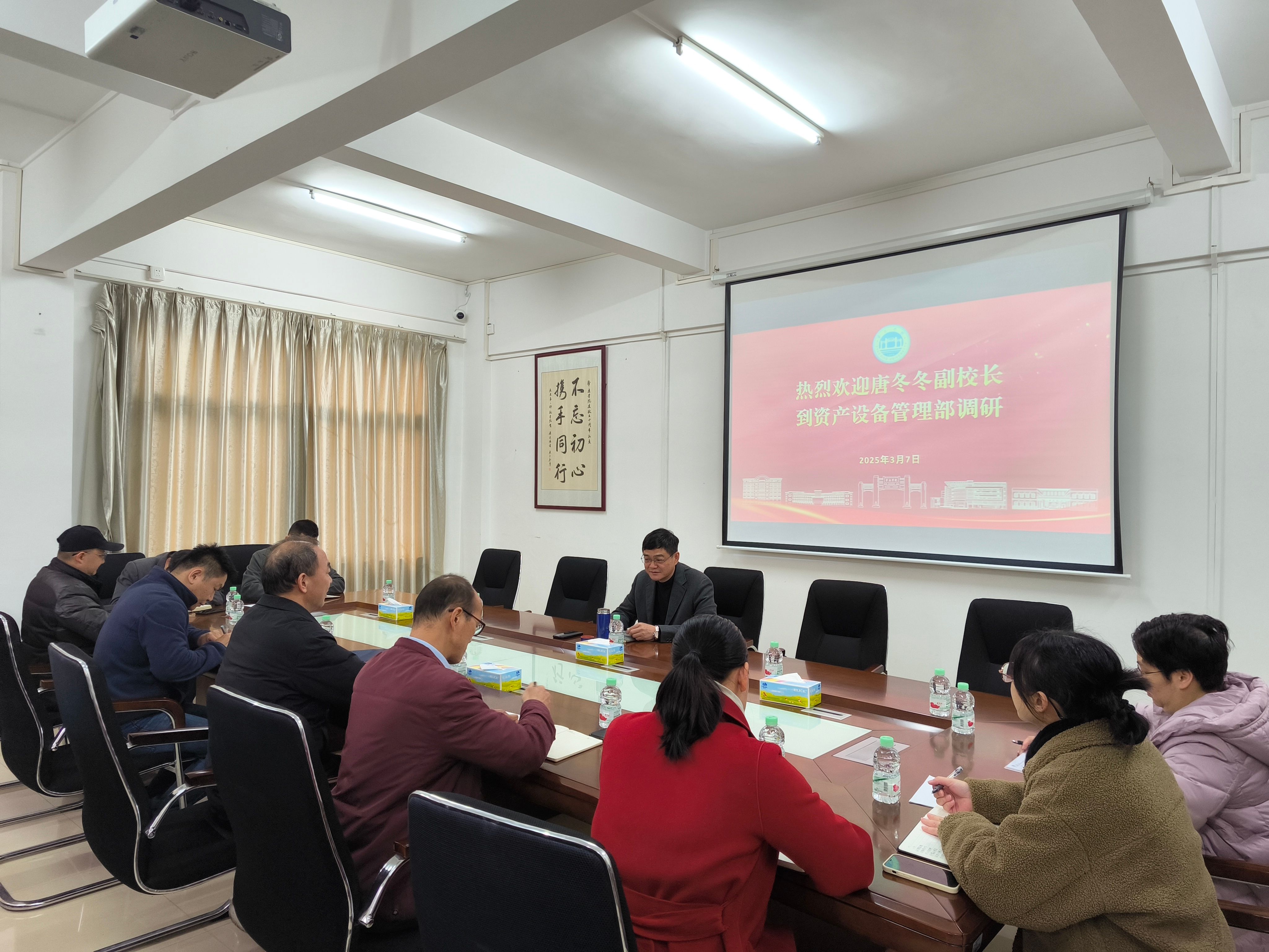 为全面了解和指导学校资产管理工作,3月7日,副校长唐冬冬深入资产设备管理部开展专题调研,听取部门工作汇报并提出指导意见。资产设备管理部部长及部门全体成员参加调研会议。