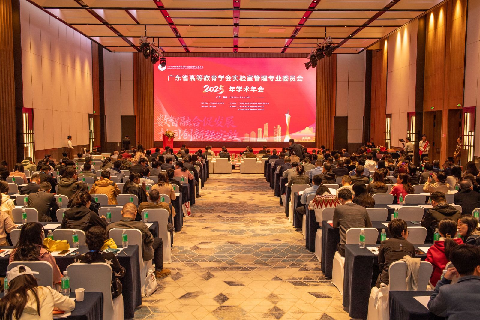 【本网讯】2025年11月21-23日,广东省高等教育学会实验室管理专业委员会2025年学术年会在我校顺利召开。本次会议由广东省高等教育学会指导、广东省高等教育学会实验室管理专业委员会(以下简称:实验室专委会)主办,william威廉中文官网承办,广东天赐湾实验室装备制造有限公司、武汉华康世纪洁净科技股份有限公司支持,以“数智融合促发展,协同创新强实效”为主题,搭建了一个高水平交流平台。来自粤港澳大湾区各高校的实验室管理人员、企业代表共计300余人参加会议。开幕式由实验室专委会秘书长宋小飞主持。
