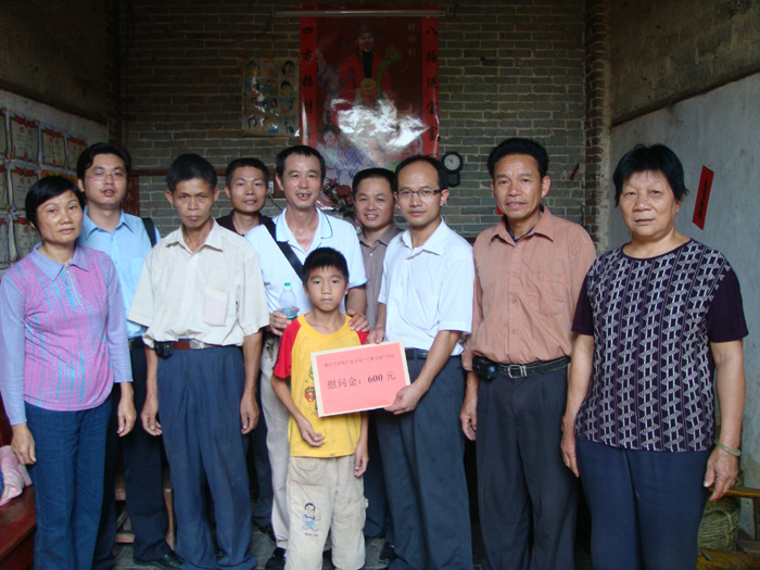 随后,我们走访了多户群众家庭,并向一户党员家庭和一户群众家庭送上食用油和米等物品以示慰问。接着,我们先去到困难党员冯子梁同志的家,给他送上600元慰问金;再去到单亲贫困学生伍钊飞家里,为他送上600元资助金,以帮助其顺利完成学业。伍钊飞的奶奶感动得流下了感激的热泪,感谢党组织的关心和帮助。